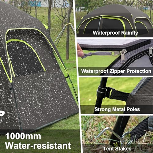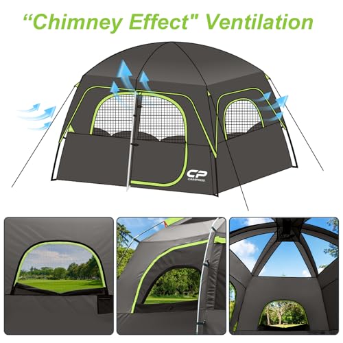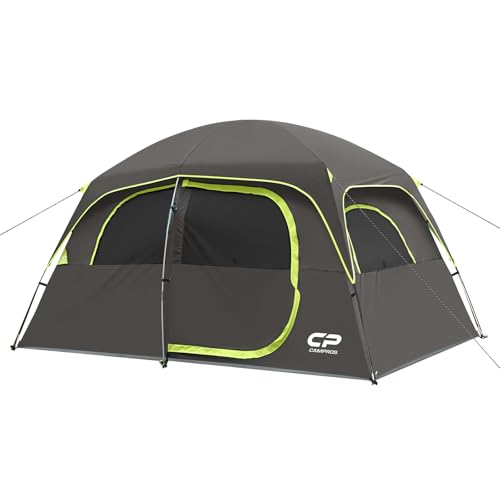 CAMPROS CP Upgraded 6/8 Person Camping Tents, Waterproof Windproof Family Tent with Larger Mesh Windows & Door, Double Layer, Easy Set Up, All-Season Dome Tent with Top Rainfly & Carry Bag