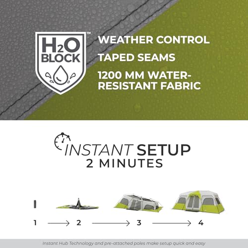 CORE Instant Cabin Tents | 6 Person / 9 Person / 10 Person / 12 Person Family Cabin Multi Room Pop Up Tents Car Camping | Included Storage Pockets for Camping Accessories