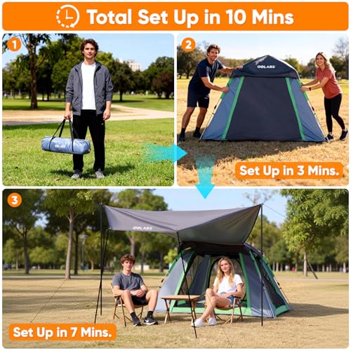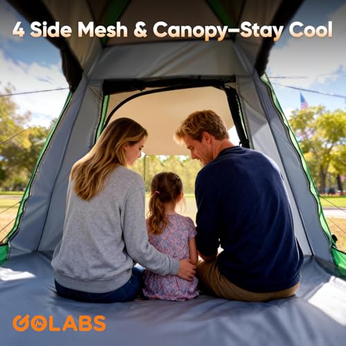 Quick 3-Minute Setup : The Golabs camping tent features an innovative pre-attached poles design for instant setup—just unfold it like an umbrella! In just 3 minutes, even beginners or solo campers can set it up quickly. Perfect for quick camping trips!