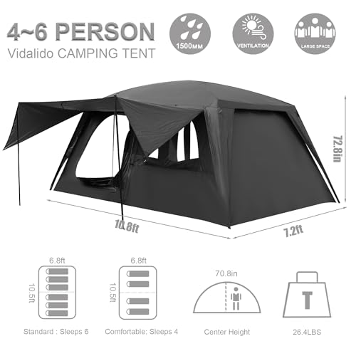 Vidalido 4-6 Person Camping Tent with 3 Door 2 Room Large Family Cabin Tents, Double Layer Waterproof Portable Glamping Tent, Big Tents for Outdoor Camping Hiking and Backpacking