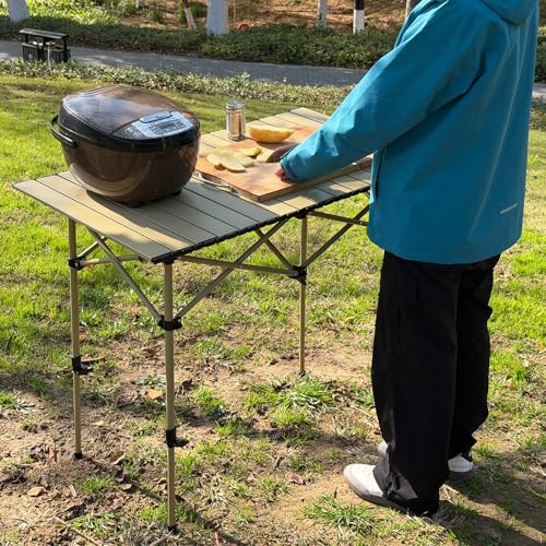 Camping Table Folding Portable Camp Lightweight Roll Up Table Adjustable Height with Carry Bag Indoor Outdoor for Camping, Home,Picnic,Backyard,BBQ,Party