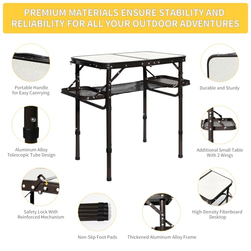 Folding Camping Table Outdoor Indoor Picnic BBQ Aluminum Lightweight Tall Camping Table 3-Height Adjustable 25in Max 50 Extra Space with Carry Handle & Mesh Pocket Small Foldable Table