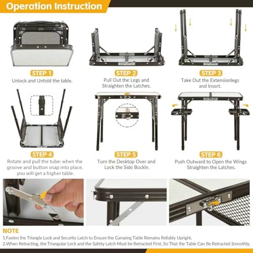 Quick Setup in 5 Steps:Set it up in no time—unfold, extend the legs, lock the side buckles, and open the wings. That’s it! Bonus: It includes a mesh storage bag for your convenience, making this small foldable table a must-have for your next adventure.