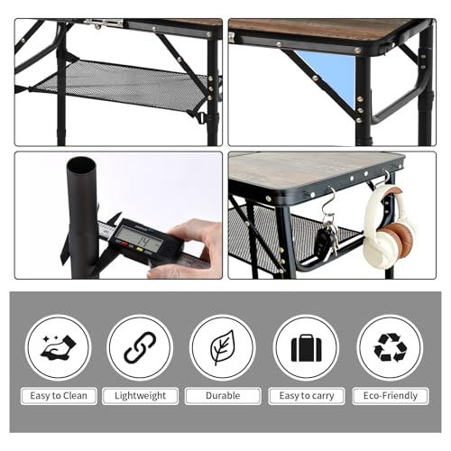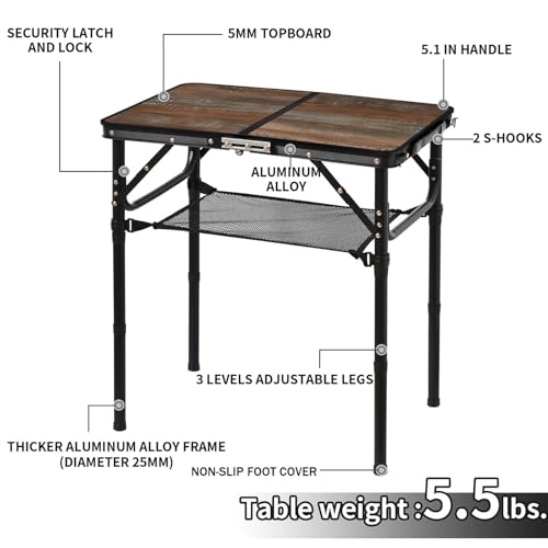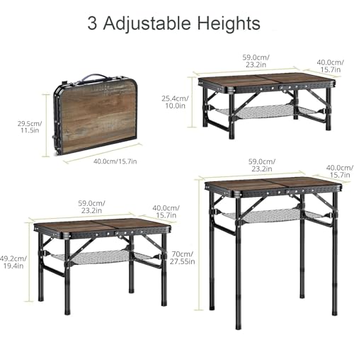 Folding Picnic Table 2ft Portable Camping Table Adjustable Heights Metal Aluminum Lightweight Foldable Small Outdoor Card Table with Carry Handle for Outside Indoor Camp Cooking BBQ Beach