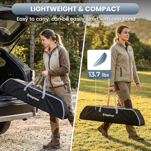 【Family Size Folding Camping Table】KingCamp folding camping table spacious desktop area (42.1 × 27.6 inches) is large enough for 2-6 people. 27.6 inches height and triangle structure stent design of camping table can give you enough and comfortable space to put your legs.