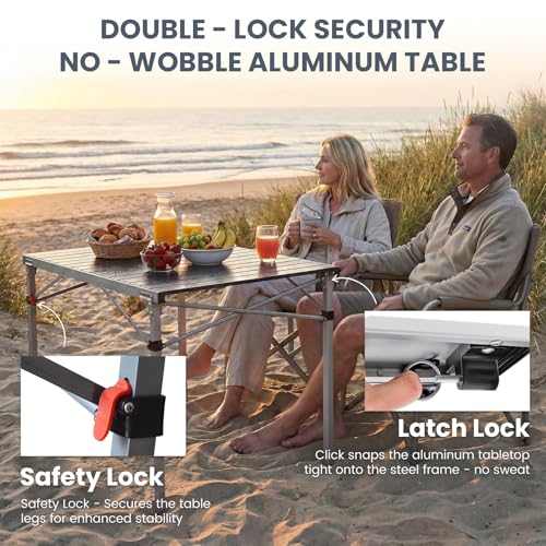 【Durable Aluminum Camping Table】This folding table camping is made of thicker aluminum alloy and anodized treatment, which is rust free, corrosion-resistant,easy to clean. The aluminum grill table adopts metal material contact point and triangular steel structure design to ensure stable use.