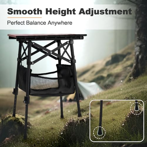 Sturdy Construction & Storage Bag: Supports up to 132lbs in locked mode and 50lbs in adjustable mode. This portable camping table features an Oxford fabric storage bag beneath the tabletop, providing durable storage space for extra food or beverages. Ideal for 1-2 person camping trips, it’s perfect for beach outings, picnics, camping, and fishing.