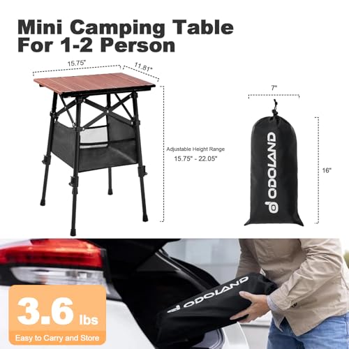 Odoland Folding Camping Table, Adjustable Height Portable Lightweight Mini Beach Table with Storage Bag for Outdoor Picnic Travelling, Backyards, Fishing