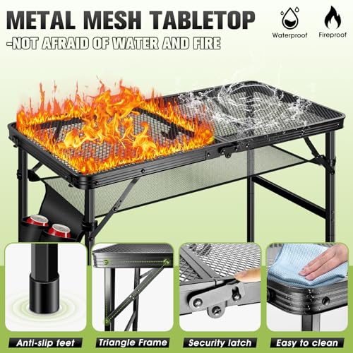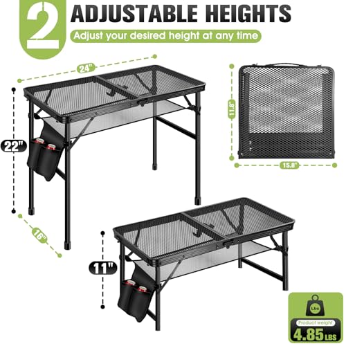 Upgraded Folding Grill Table – Metal Portable Camping Table, 2 Height Adjustable Max 22″, Lightweight Foldable for Outside BBQ 24″x15.8″