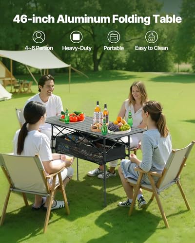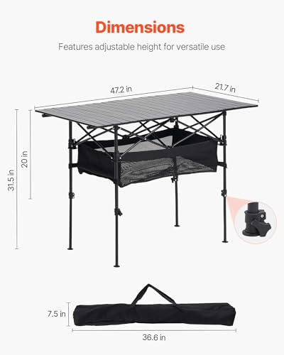 VEVOR Folding Camping Table, Portable Roll Up Side Tables, Lightweight Aluminum Beach Table for Outdoor BBQ Tailgating Picnic, Travel (47 inch-Black)