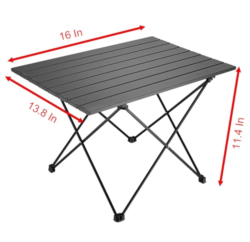 Folding Camping Table, 16 Inch x 13.8 Inch x 11.4 Inch Black Carbon Steel Foldable Table with Storage Bag for Home and Outdoors