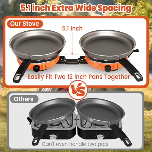Easy to Set Up and Clean: This 2 burner propane stove offers hassle-free installation and a simple cleaning process, making outdoor cooking more convenient than ever. Its folding camp stove design ensures easy portability, and as a reliable portable gas stove, it’s perfect for any camping or outdoor adventure