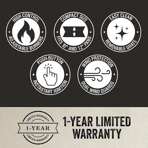 Potent: 22,000 total BTUs of cooking power; Up to 1-hour burn time on high on one 16 oz. propane cylinder (sold separately)