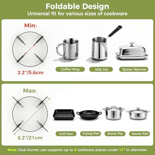 𝗪𝗶𝗻𝗱𝗽𝗿𝗼𝗼𝗳 𝗧𝗲𝗰𝗵, 𝗡𝗼 𝗦𝗵𝗶𝗲𝗹𝗱 𝗡𝗲𝗲𝗱𝗲𝗱: Forget about bulky external windshields. Our camp stove uses a sunken burner design with 25mm-raised hollow grates that that effectively lock in heat even in coastal breezes. The serrated adjustable supports expand from 2.2” to 8.2”, securely gripping everything from a small espresso cup to an 11” heavy-duty pot. Perfect for RV travelers and campers who demand stability on uneven ground.