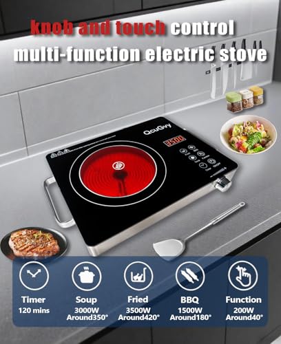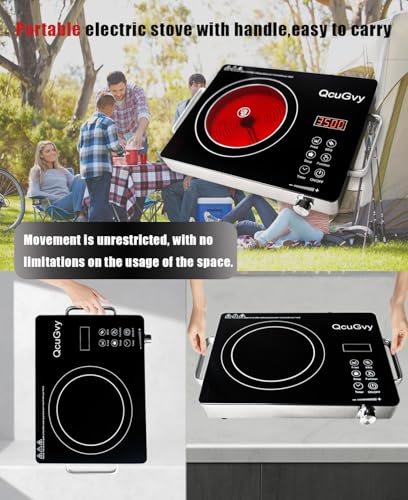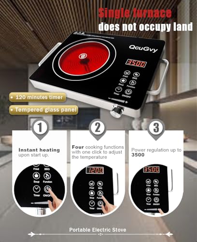 【Safety-Convenience】Designed with safety in mind, this countertop burner infrared features an anti-scalding portable handle, overheating protection, and a timer function. Perfect for home and outdoor cooking, this 3500 watt hot plate offers convenience and peace of mind.