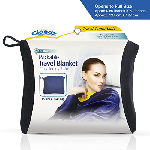 Cloudz Super Soft Jersey Airplane Travel Blanket for Your Flight, Car, Camping, Home or Comforting Warmth Anywhere! Large in Size at 50″x 50″ and Includes a Bag! – Black