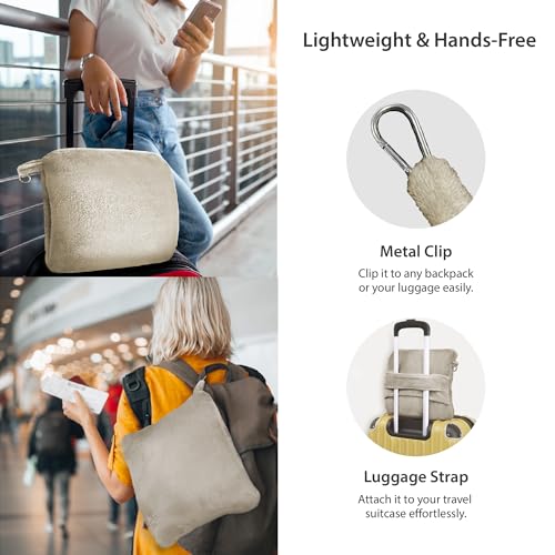 On-the-Go Comfort Blanket: Features a luggage sleeve for easy attachment to suitcase and a metal clip for carrying on any backpack. Our travel blanket ensures comfort on a long flight, road trip, or at home/ office, ideal for air travel and beyond.