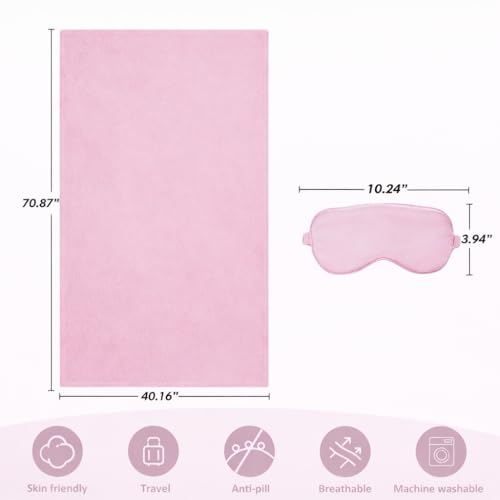 Travel Blanket, Airplane Blanket, Ultra-Soft, Warm & Lightweight, 65×40 in, Outdoor Blanket Essentials for Women, Men & Kids, Included Eye Mask, Luggage Sleeve & Backpack Clip Pink