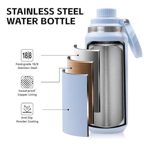 24-HOUR ICE RETENTION: Food-grade 18/8 stainless steel material+ BPA-free silicone straw. Double-wall vacuum insulated water bottle stainless steel keeps drinks cold for 24 hours, according to multiple user experiences. leak proof water bottles are perfect for gym sessions, road trips, or all-day outdoor adventures