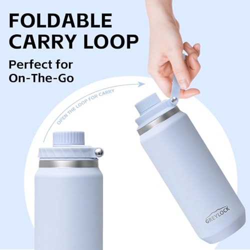 GREYLOCK 24 oz Insulated Water Bottle with Straw Lid, Leakproof Reusable Stainless Steel Vacuum Flask, 24hr Cold & Hot, Carry Handle & Silicone Spout, BPA-Free for Gym, Hiking, Travel,Blue