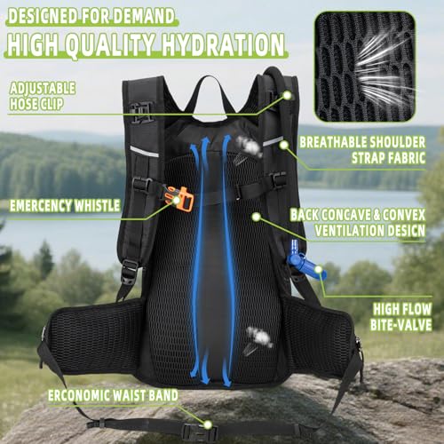 【Lightweight and Breathable Design】: This hiking hydro backpack is both lightweight and breathable. The pack’s shoulder straps, waist straps, and back area are features an ultra-elastic breathable padded with ventilated mesh cushioning to ensure comfort, This 3 L hydration backpack is suitable for your all-day hydration needs, making it perfect for long hikes, bike rides,runs or any outdoor adventures.