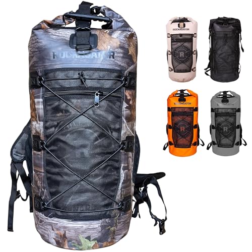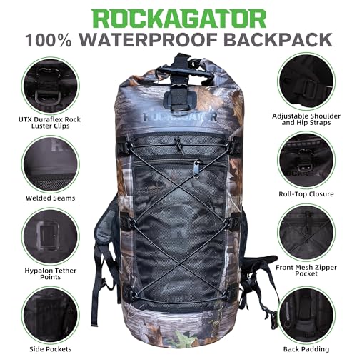 Rockagator Kanarra 90L Waterproof Backpack for Camping, Hiking, Mountaineering, Backpacking, Hunting, Fishing, Canoeing, Outdoor Activities, The Wet Outdoors – Large Capacity, Roll Top Closure, Camo