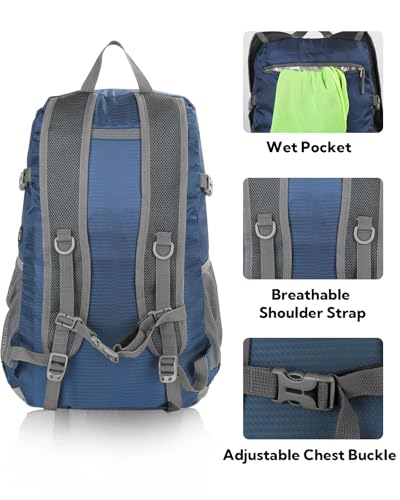 WATERFLY Lightweight Packable Hiking Backpack: 30L Foldable Travel Daypack Ultralight Camping Day Pack for Woman Man
