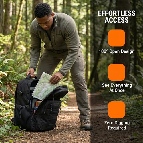 Revolutionary 180° Full-Access Design Stop digging for your gear! This hiking backpack’s main and secondary compartments both swing open a full 180°, giving you instant, clutter-free access to all your essentials. Weighing just 1.76 lb, this lightweight daypack makes packing and unpacking for your adventure effortless, so you can spend less time searching and more time exploring.