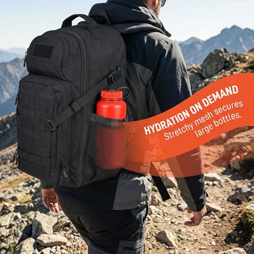 Fully Customizable MOLLE System: Make it truly yours. The extensive MOLLE webbing on this tactical backpack acts as an external framework for your gear. Easily attach extra pouches, carabiners, or tools to customize your load for any scenario, from a day hike to a camping trip or emergency preparedness mission.