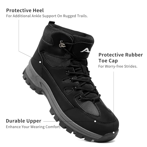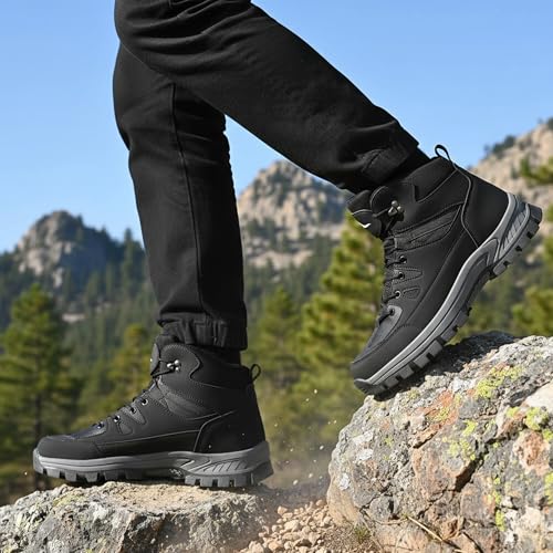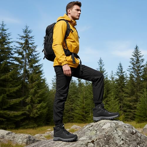 HARENCE Mens Waterproof Hiking Boots Comfortable Outdoor Walking Trail Boot Non Slip Mid Ankle Trekking Shoes
