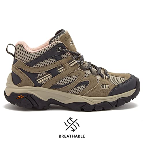 HI-TEC Ravus Mid Hiking Boots for Women, Lightweight Breathable Outdoor Trekking Shoes