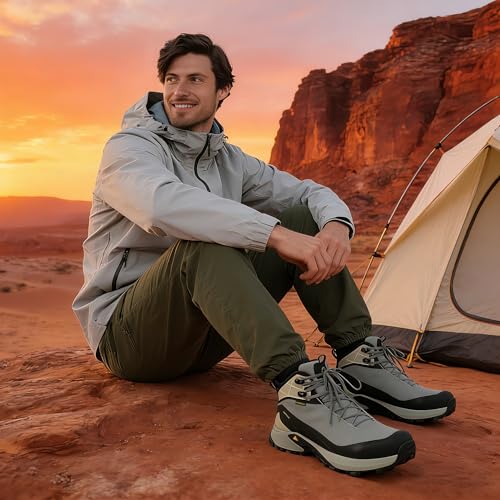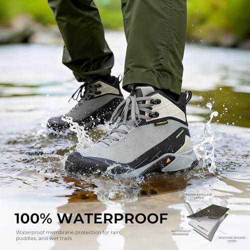 HUMTTO Men’s Waterproof Hiking Boots Lightweight Mid Ankle Trekking Shoes Anti Slip Outdoor Trail Boots for Backpacking Camping