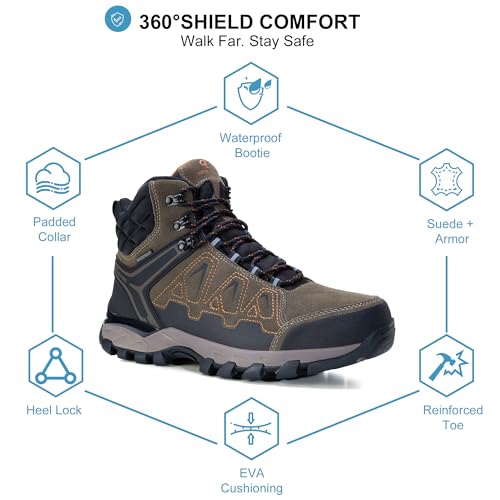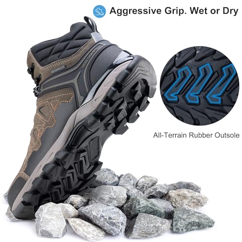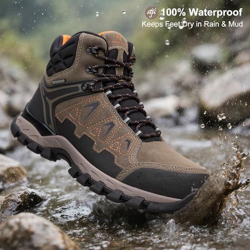 OL OUTJET LEGEND Mens Waterproof Hiking Boots Lightweight Mid Leather Outdoor Trekking Boots