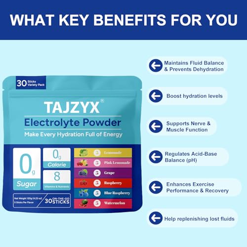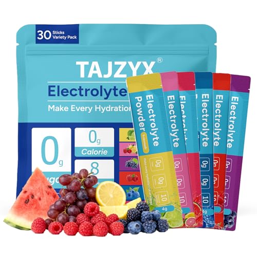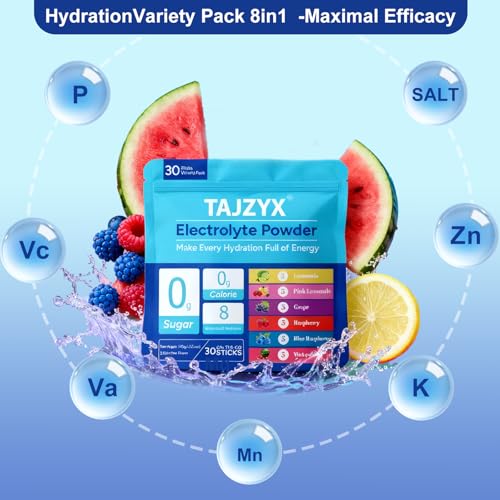 Hydration Packets Sugar Free, 0 Calorie Electrolytes Powder Packets 6 Flavors, 8 Electrolytes & Minerals Variety Pack, 30 Stickpacks for Sports, Travel, Workouts & Daily Hydration