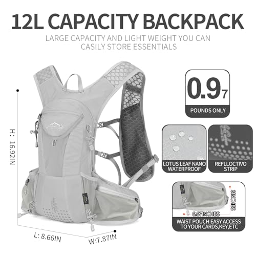 🚴【Highly Durable & Lightweight】This awesome IX INOXTO running hydration vest backpack made of scratch-resistant and wear-resistant material with a lotus leaf-like waterproof effect. 16.92”x8.66”x7.87” in size, Ergonomically fits, The weight of 0.97 lbs and capacity of 12L are the perfect match for short trips, satisfy your thirst for adventure.