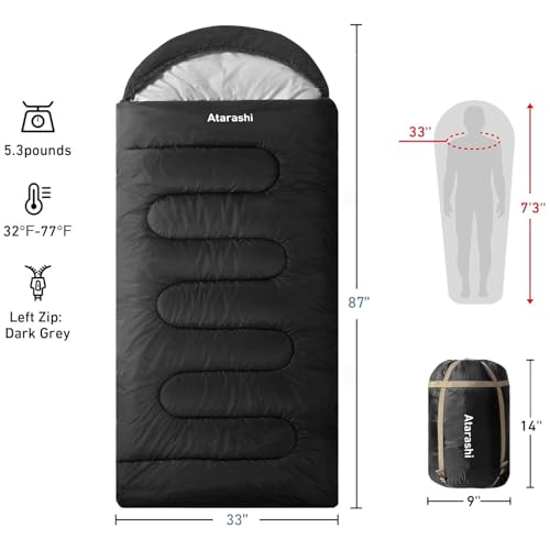 Atarashi Camping Sleeping Bag- 4 Seasons for Adults, Light, Warm, Extra-Large with Compression Sack- Great for Hiking, Backpacking & Outdoor Adventures