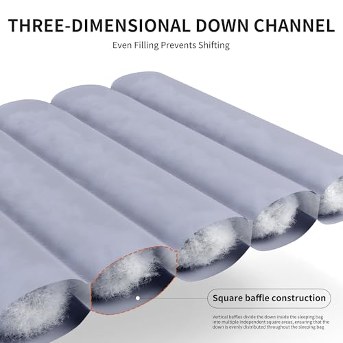 【Ultralight & Portable】Weight only 2lbs( 910g), super ultralight and portable. Each sleeping bag comes with a storage bag and a compression sack, packed size only 13.8” x 7.1”. SAVE SPACE AND WEIGHT for your backpack