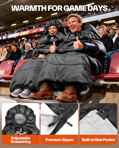 Cold Weather Ready: Built for 32-65°F with high-efficiency thermal hollow fiber, it locks stagnant air for insulation. Adjustable drawcord hood + snap-secured zipper dual protection traps warmth, keeping you cozy from head to toe for stadiums, camping or autumn trips.