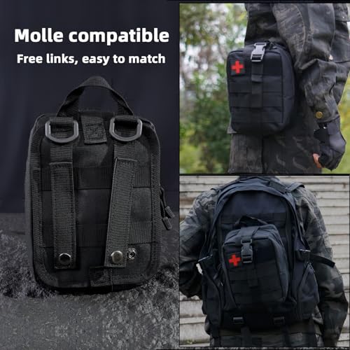IFAK Trauma Kit, Molle Pouch Emergency Survival Kit, 6” Israeli Straps, Chest Seal Vented, Self-Adhesive Elastic Bandage, for Wound Care(Black)