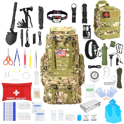 Survival Gear Professional Kit and Large Camping Backpack,First Aid Kit for Adventure Outdoor Hiking Accessories