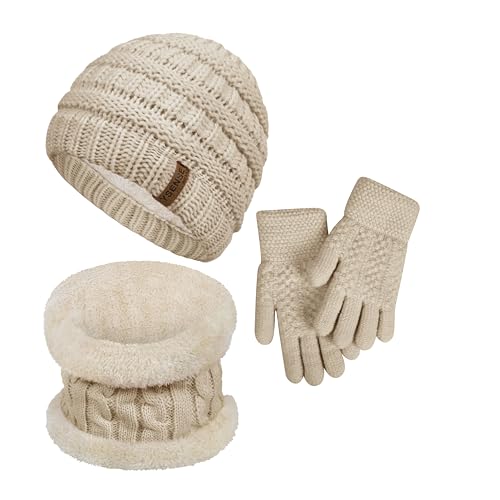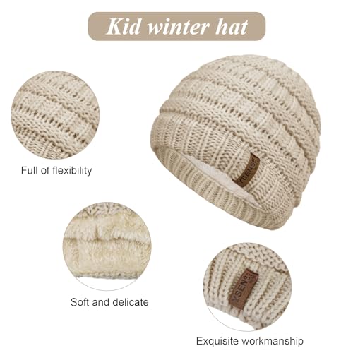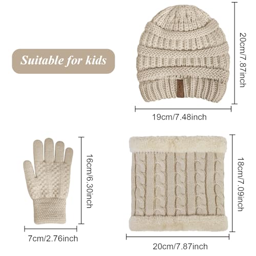 YSense 3 Pcs Kids Winter Beanie Hat Scarf Gloves Set Thick Knit Warm Fleece Fuzzy Lined Beanie Caps Mittens for Boys Girls