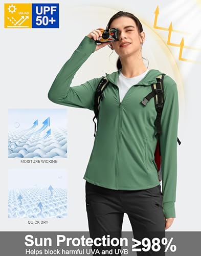 G Gradual Women’s UPF 50+ Sun Protection Hoodie Jacket with Ponytail Hole and 4 Pockets Lightweight Long Sleeve for Hiking