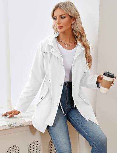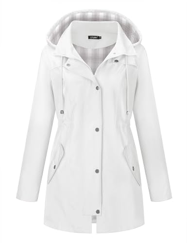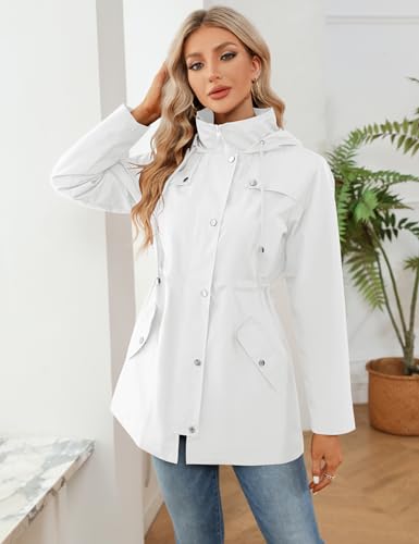 LOMON Women Waterproof Outdoor Hiking Raincoat Women Lined Rain Jacket Lightweight Hooded Jackets Trench Coats