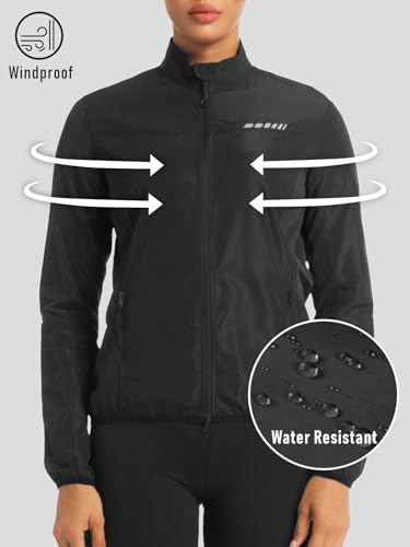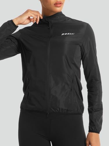 qualidyne Women’s Windproof Cycling Jacket, Lightweight Bike Windbreaker with Reflective Element and 2 Zipper Pockets for Running, Cycling & Hiking