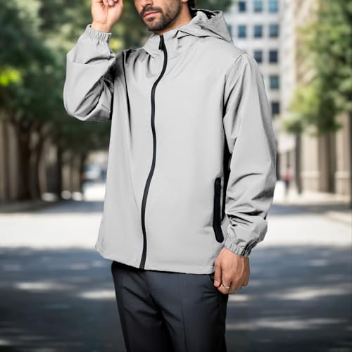 Rain Jacket Men Waterproof Windbreaker Lightweight Hooded Casual Coat for Daily Hiking Cycling Coat