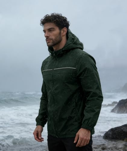 SWISSWELL Mens Rain Jacket & Coats Packable Lightweight Waterproof Windbreaker Hooded for Golf Cycling Hiking