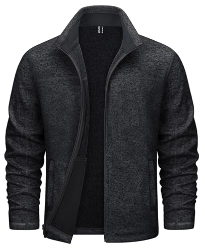 Men’s Full Zip Fleece Jacket Soft Thermal Lined Coat Warm Casual Sweater with Pockets for Work Hiking
