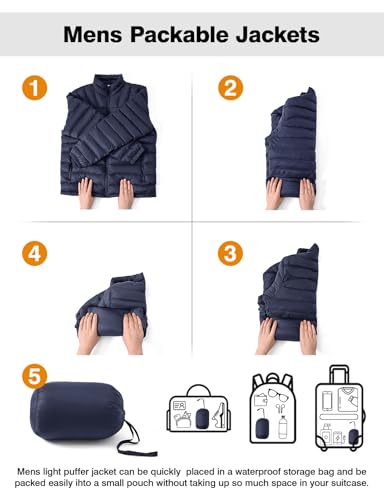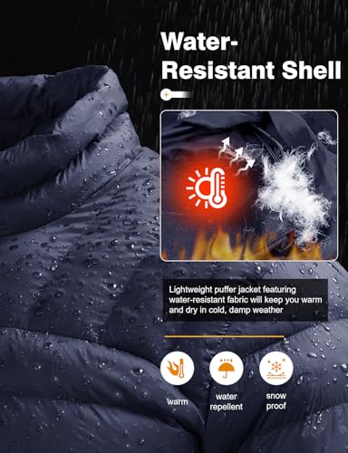 TBMPOY Men’s Lightweight Packable Puffer Winter Jackets Puffy Water-Resistant Bubble Insulated Coat for Travel Ski Hiking