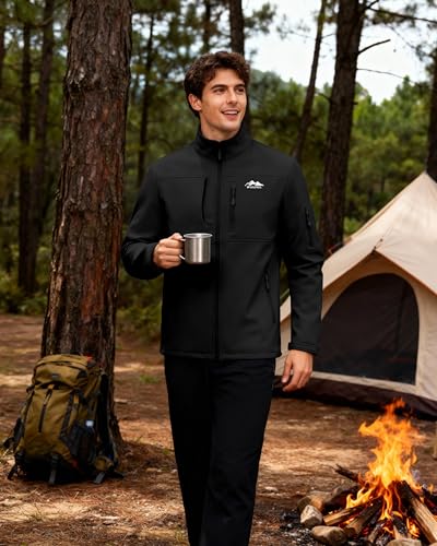 WULFUL Men’s Lightweight Softshell Jacket Warm Fleece Lined Windbreaker Waterproof Rain Jacket for Winter Outdoor Hiking