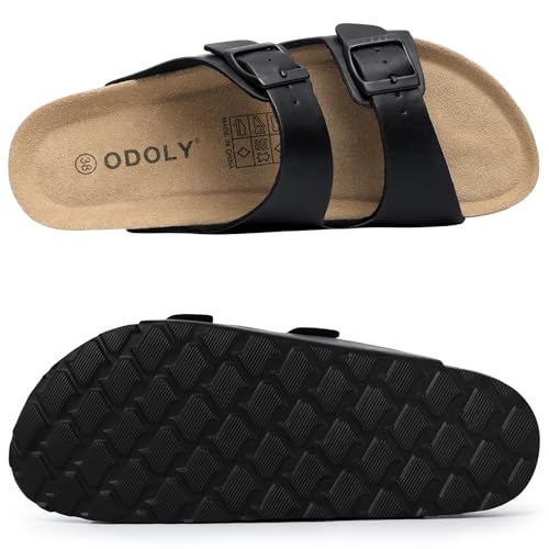 Unisex Cork Footbed Slide Sandal, Arch Support Summer Outdoor Sandals with Adjustable Buckle for Women and Men